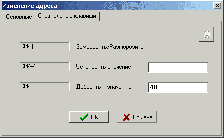 В окне редактирования адреса можно назначить специальные клавиши для каждого адреса в таблице, что позволяют изменить значение по этому адресу из самой игры, не переключаясь на ArtMoney.
